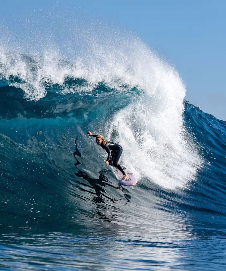 Caity Simmers for sure! Her approach to surfing is unreal, and her approach to life inspires me. I love that she edits her own movies and stuff. A rad human.
