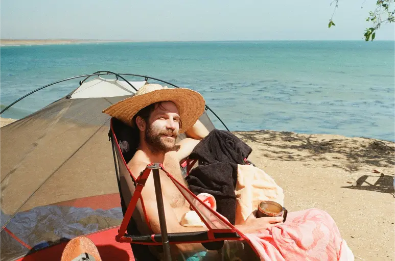 The following morning, I lay in my tent, patiently staring at the dark sky, waiting for Earth to spin to the point where the sun starts to reach our portion of the world. I loaded a roll of film into my camera, excited to see the wave conditions, have a coffee, take a few early light photos, and then hop into the ocean with only a few friends.