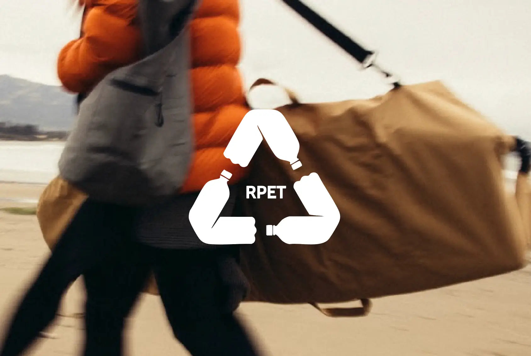 All the heavyweight canvas in our bags is made from up-cycled plastic bottles, known as RPET (recycled polyester). Depending on the product, we may use other recycled or up-cycled materials as well. You can find a full "sustainability guide" on each product page, just below the product description